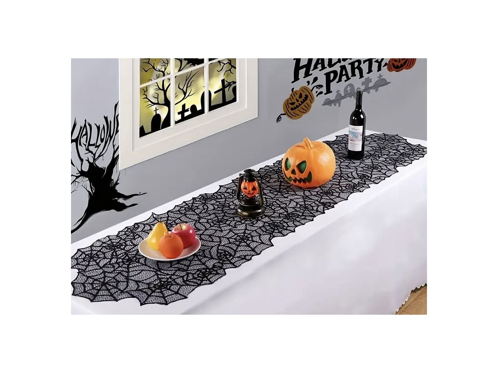 › HALLOWEEN › Černý ubrus s pavouky 180x45cm