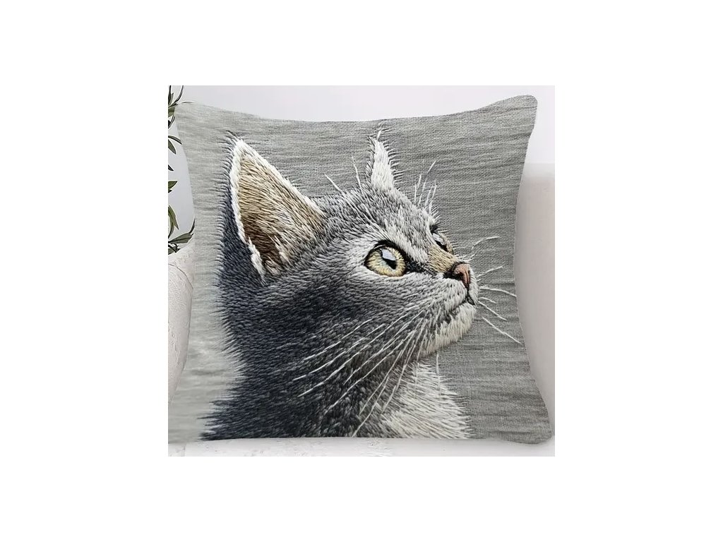 › Hodiny a dekorace › Polštář s náplní KOČKA šedá