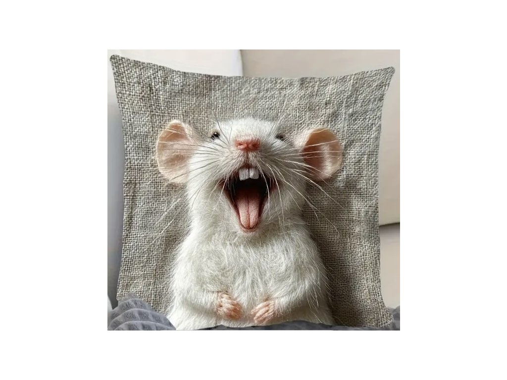 Polštář s bílým potkánkem s náplní, na zip, možno sundat a vyprat