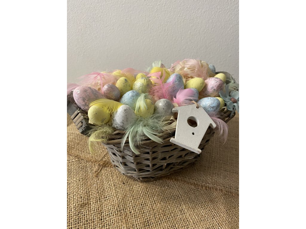 Velikonoční dekorace pastelová v košíčku