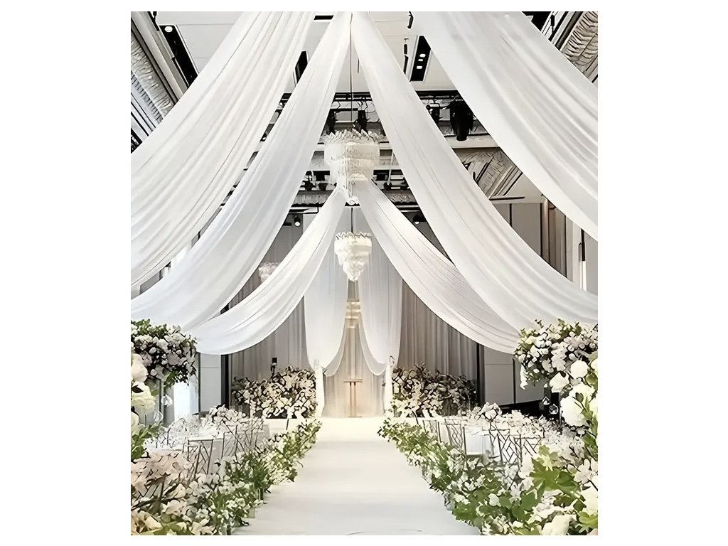 › Svatební dekorace › Organza, tyl, juta, krajka › Juta a tyl › Bílá splývavá látka na svatební bránu 160cm/10m