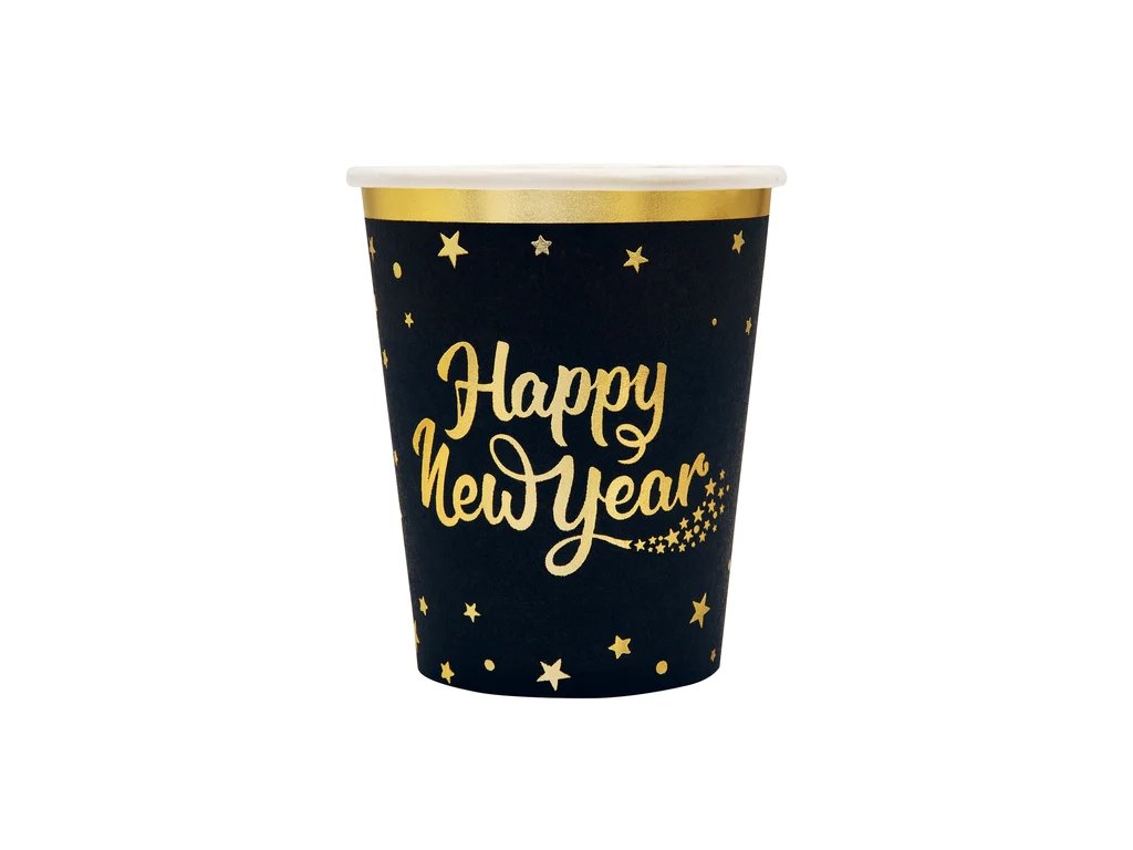 Kelímky papírové černé s potiskem 6 ks