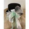Ozdoba na auto pro ženicha - saténový cylindr s přísavkami a bílou mašlí
