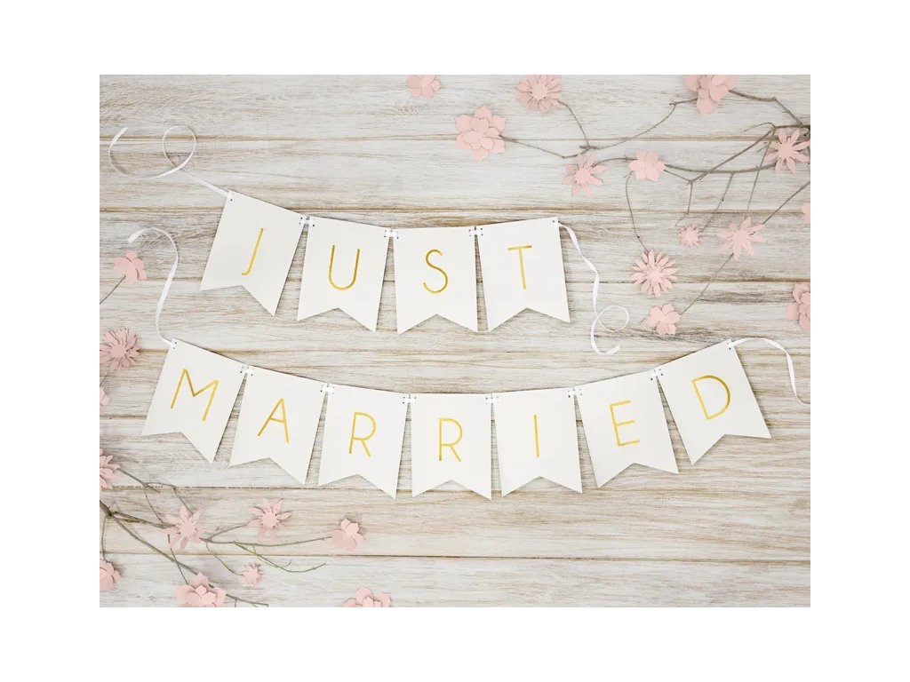 Girlanda svatební JUST MARRIED bílá